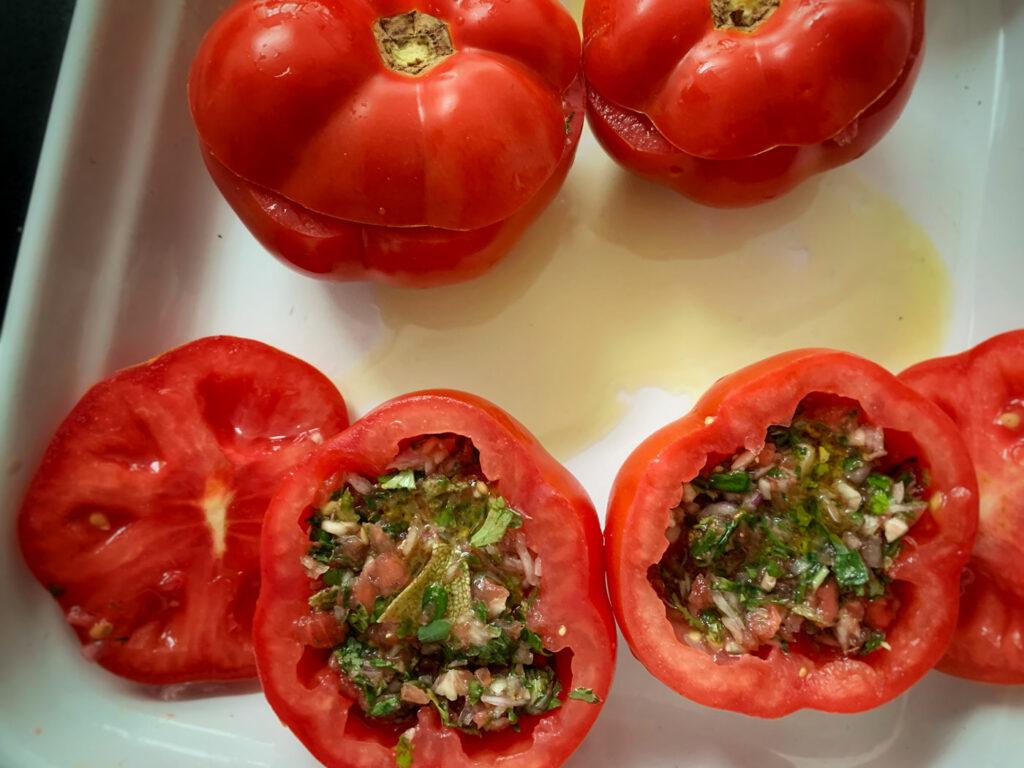 Tomaten gevuld met verse kruiden, naar een recept van Alain Passard, lang leve zijn Instagram account. Superlekker in al z’n eenvoud.