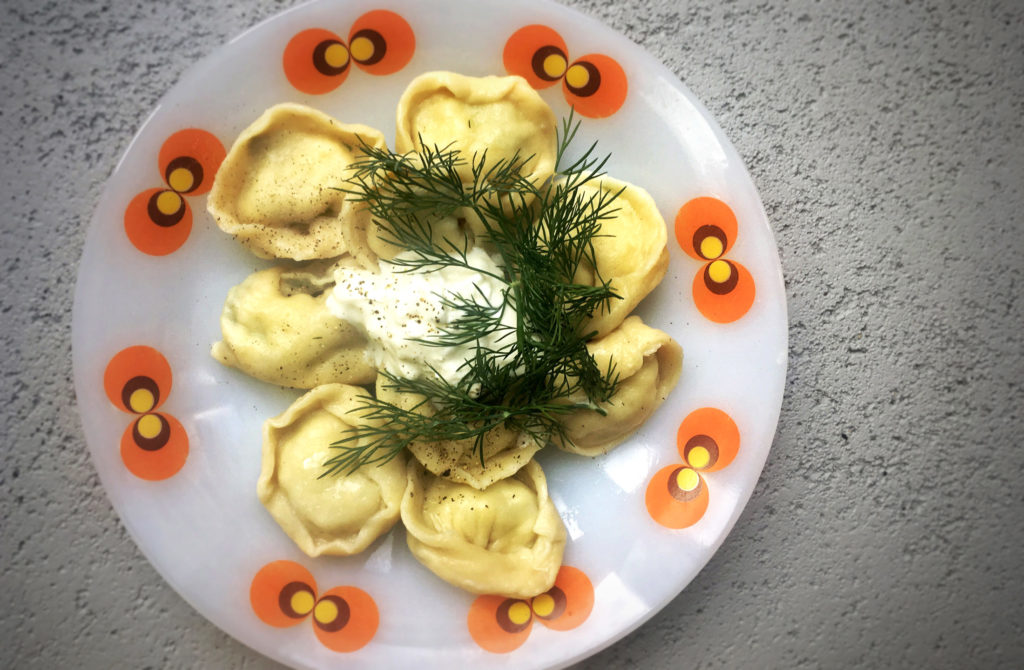 Voor de vulling van de dumplings wordt in Rusland namelijk vooral vlees gebruikt, met name vet varkensvlees met een beetje ui. Maar ook aardappel kun je erin vinden. Voor mij is er echter niks Russischer dan de combinatie van zure room en dille. De inspiratie voor de vulling en topping van deze pelmeni.