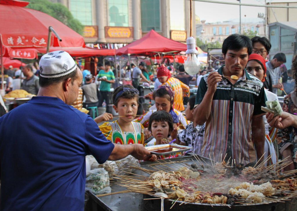 Overal rokende grills met vlees, de moskee muezzin roept op tot gebed, oude mannen hebben witte skullcaps op en vrouwen dragen een hijab. We zijn in het westen van China, maar Oost-Turkestan is hier misschien beter op z’n plaats.